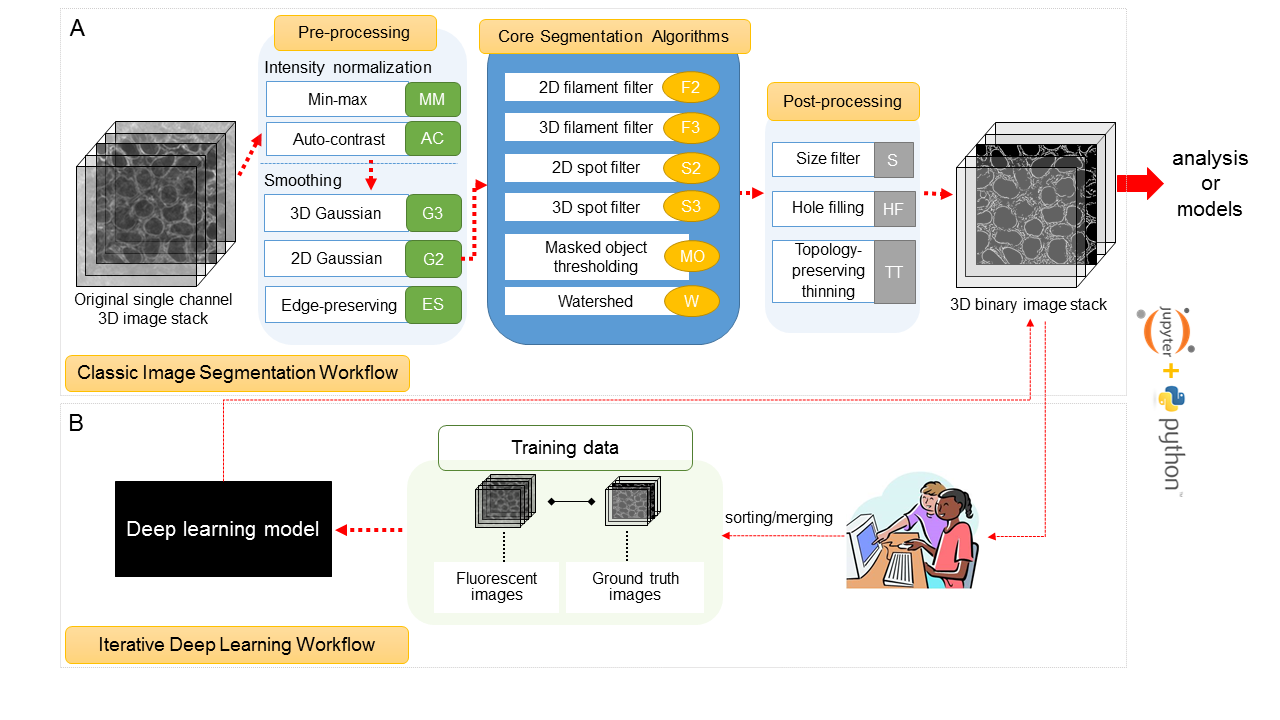 - Human-in-the-loop iterative deep learning segmentation workflow trained on ground truth manually curated data from the images segmented with the segmentation workflow. Importantly, this module was not released yet.