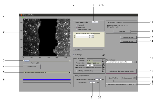 For each video, the velocity and the order parameter are analyzed in time and space to extract quantitative parameters characterizing the cell motility phenotype. The different conditions (videos) can then be classified according to these parameters.