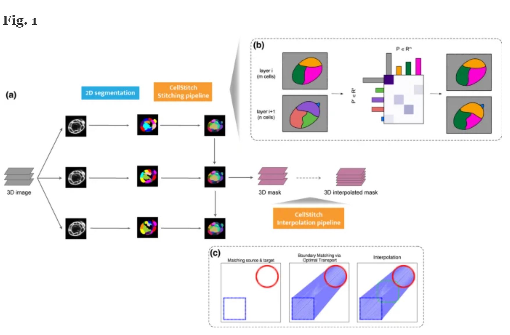 CellStich proposes a set of tools for 3D segmentation from 2D segmentation: it reassembles 2D labels obtained from cell in slices in unique 3D labels across slices. It isparticularly robust to anisotropy, and is the ideal companion to cellpose 2D models or other 2D deep learning based models. One could also think about using it for cell tracking by overlap (using time as a third dimension).