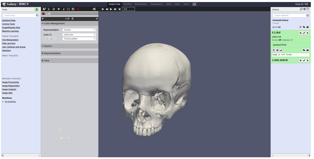 This ParaViewWeb Docker container is used by the Galaxy Project. Paraview is an VTK based visualization server, for 3D.