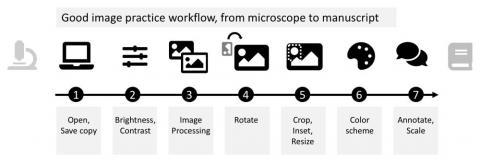 Here we present a step-by-step image processing workflow for effective and ethical image presentation. The workflow is aimed to allow novice users with little or no prior experience in image processing to implement the essential steps towards publishing images. The workflow is based on the open source software Fiji, but its principles can be applied with other software packages. All image processing steps discussed here, and complementary suggestions for image presentation, are shown in an accessible “cheat sheet”-style format, enabling wide distribution, use, and adoption to more specific needs.