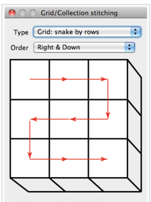 The plugin performs stitching of images of a tiled scan to reconstruct the image of the whole sample.