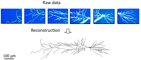 A project to develop tools that explore single neuron function via sophisticated image analysis. ORION software bridges advanced optical imaging and compartmental modeling of neuronal function by rapidly, accurately, and robustly generating, from structural image data, a cylindrical morphology model suitable for simulating neuronal function. The goal of this project is to develop a computational and experimental framework to allow real-time mapping of functional imaging data (e.g., spatio-temporal patterns of dendritic voltages or intracellularions) to neuronal structure, during the very limited duration of an acute experiment.