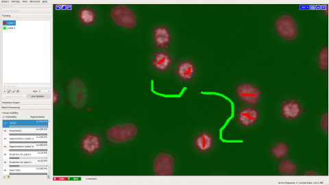 This workflow classifies, or segments, the pixels of an image given user annotations. It is especially suited if the objects of interests are visually (brightness, color, texture) distinct from their surrounding. Users can iteratively select pixel features and provide pixel annotations through a live visualization of selected feature values and current prediction responses. Upon users' satisfaction, the workflow then predicts the remaining unprocessed image(s) regions or new images (as batch processing). Users can export (as images of various formats): selected features, annotations, predicted classification probability, simple segmentation, etc. This workflow is often served as one of the first step options for other workflows offered by ilastik, such as object classification, automatic tracking.