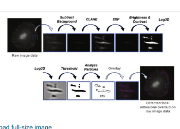 Simple workflow description for ImageJ, step-by-step description for delineating focal adhesions, count and characterize their positions.