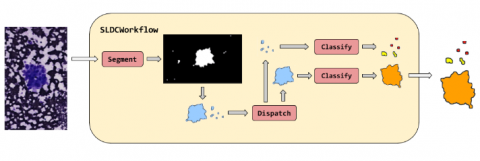 SLDC is an open-source Python workflow. SLDC stands for Segment Locate Dispatch Classify. This framework aims at facilitating the development of algorithms for detecting objects in multi-gigapixel images. Particularly, it provides algorithm developers with a structure to define problem-dependent components of their processing workflow (i.e. segmentation and classification) in a concise way. Every other concern such as parallelization and large image handling are encapsulated by the framework. It also features a powerful and customizable logging system and some components to apply several workflows one after another on a same image. SLDC can work on local images or interact with Cytomine