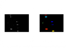 This is a simple example of a DNA damage assay using single cell gel electrophoresis. Here, the measurement of interest is the length and intensity of the comet tail. Also, illumination correction is used to reduce background fluorescence prior to measurement. Also shown is a silver-stained comet example in which the percentage of DNA contained in the tail is calculated.