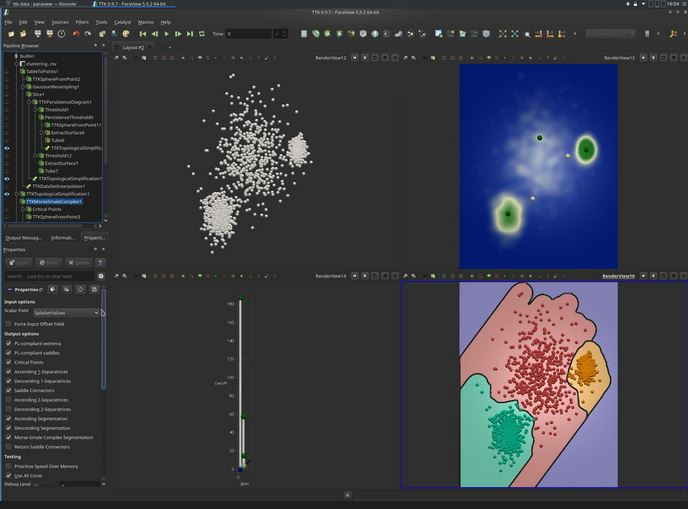 TTK can handle scalar data defined either on regular grids or triangulations, either in 2D or in 3D. It provides a substantial collection of generic, efficient and robust implementations of key algorithms in topological data analysis. It includes: